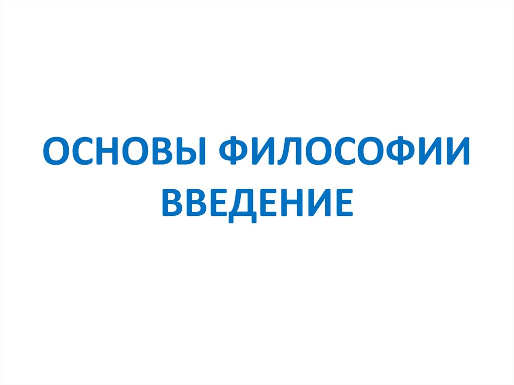 ОСНОВЫ ФИЛОСОФИИ ВВЕДЕНИЕ