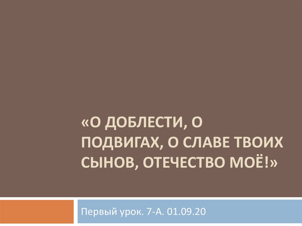 1. «О доблести, о подвигах, о славе твоих сынов, Отечество моё!»