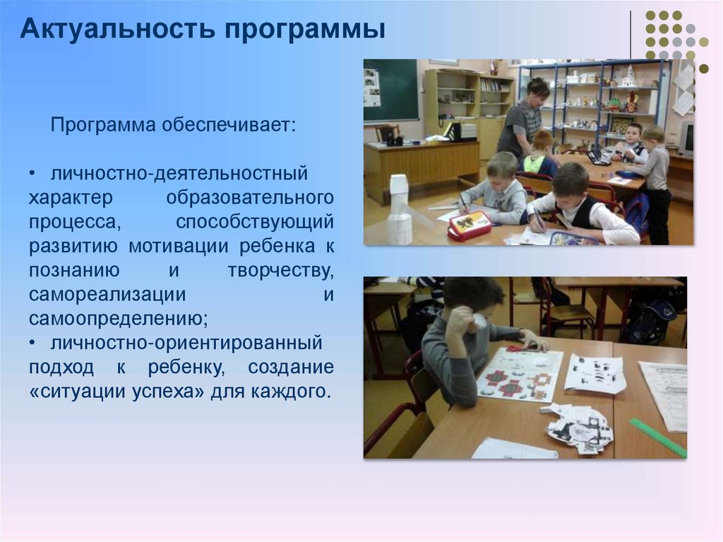 Актуальность программыПрограмма обеспечивает: