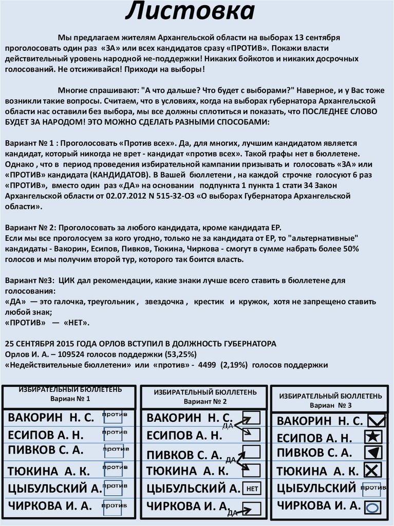 ЛистовкаМы предлагаем жителям Архангельской области на выборах 13 сентября
