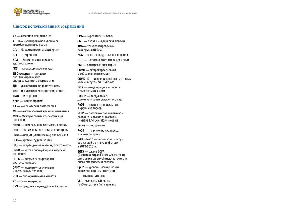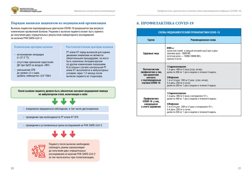 Временные методические рекомендацииПрофилактика, диагностика и лечение новой коронавирусной инфекции (COVID-19)