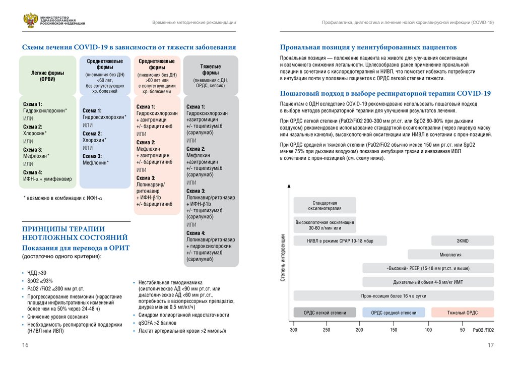 Схемы лечения COVID-19 в зависимости