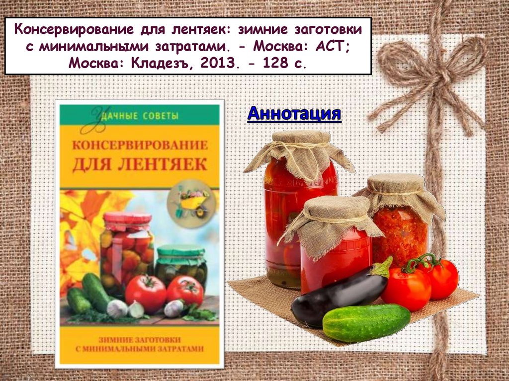 Консервирование для лентяек: зимние заготовкис минимальными затратами. - Москва: АСТ;