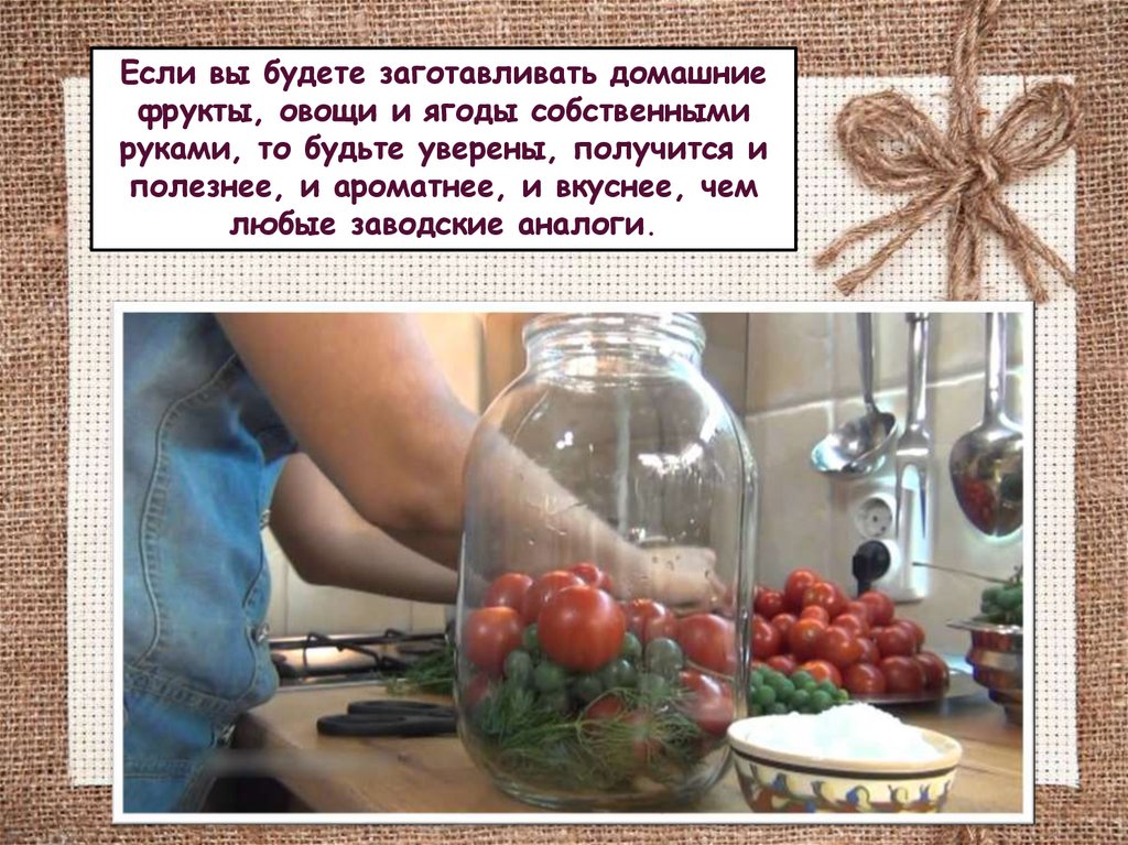 Если вы будете заготавливать домашниефрукты, овощи и ягоды собственными