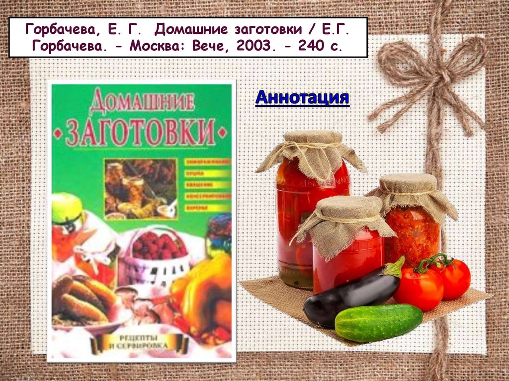 Горбачева, Е. Г. Домашние заготовки / Е.Г.Горбачева. - Москва: Вече, 2003. - 240 с.