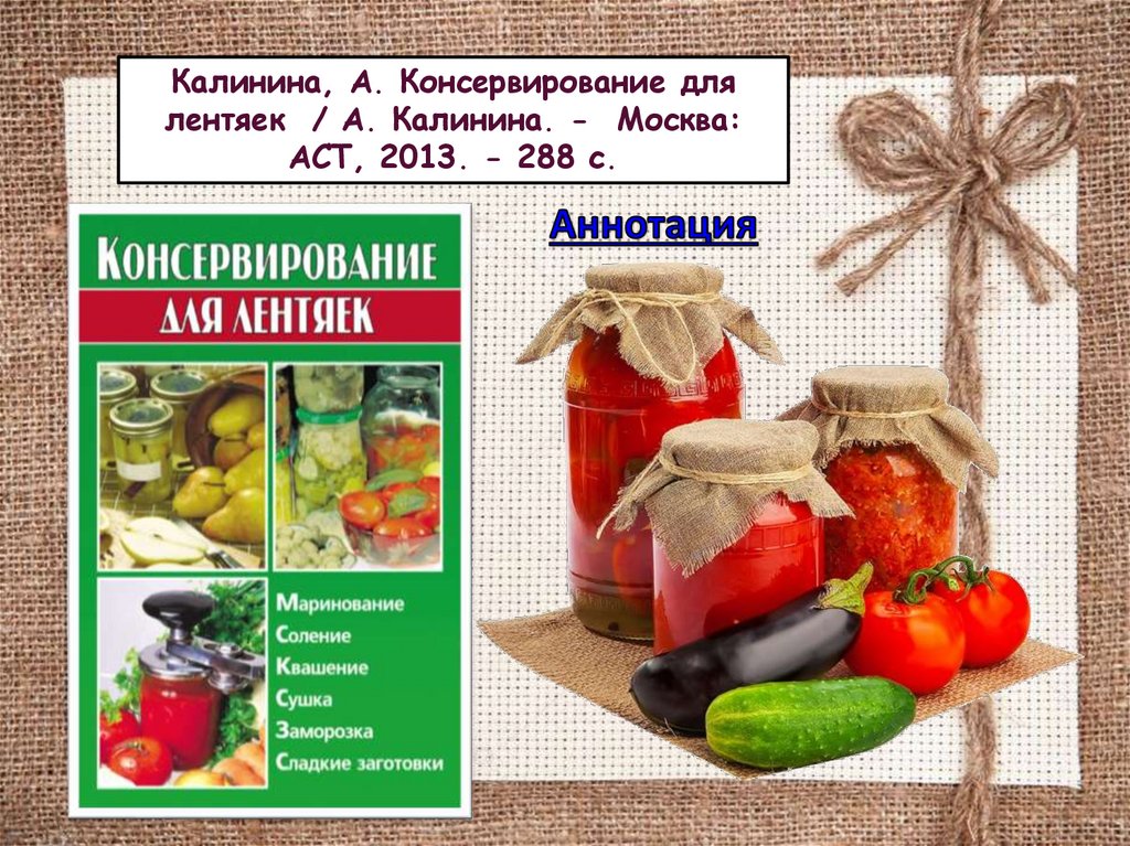 Калинина, А. Консервирование длялентяек / А. Калинина. - Москва: