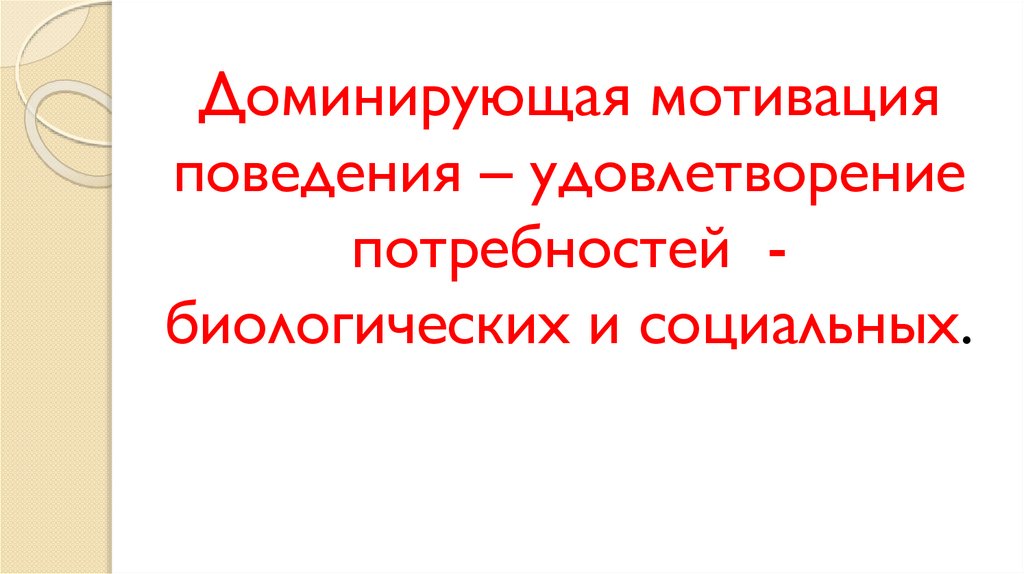 Доминирующая мотивацияповедения – удовлетворение