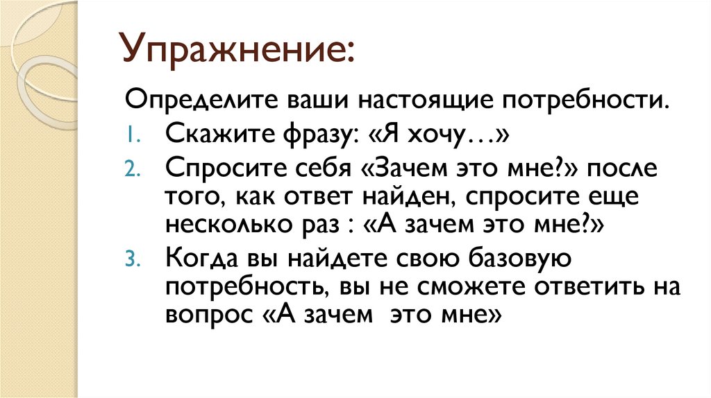 Упражнение:Определите ваши настоящие потребности.
