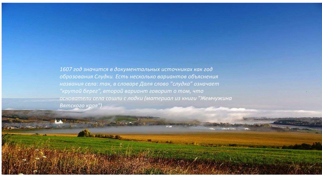 1607 год значится в документальных источниках как годобразования Слудки. Есть несколько вариантов объяснения