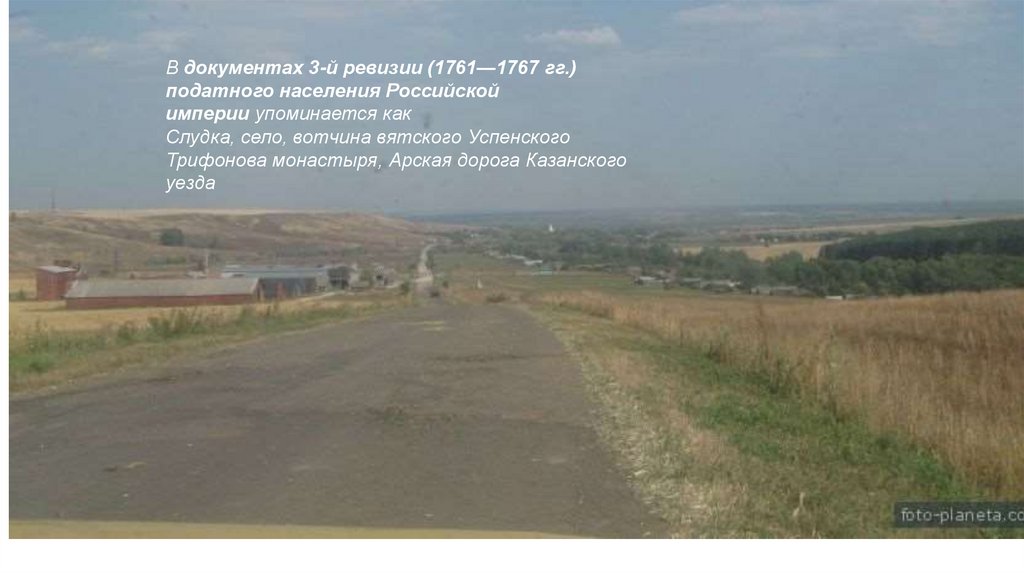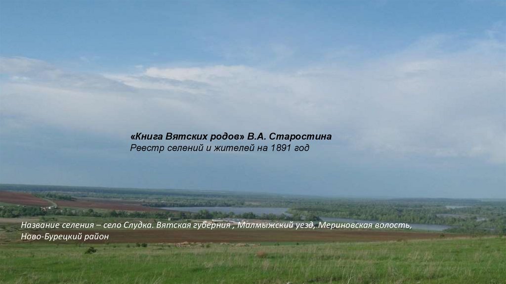 Название селения – село Слудка. Вятская губерния , Малмыжский уезд, Мериновская волость,