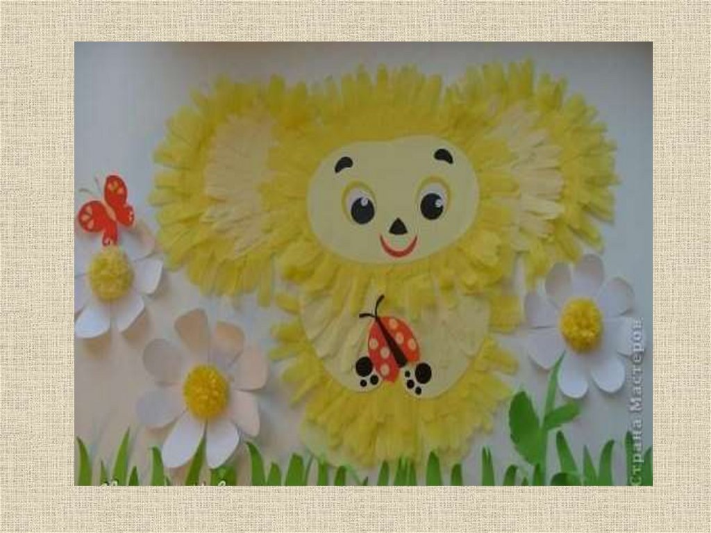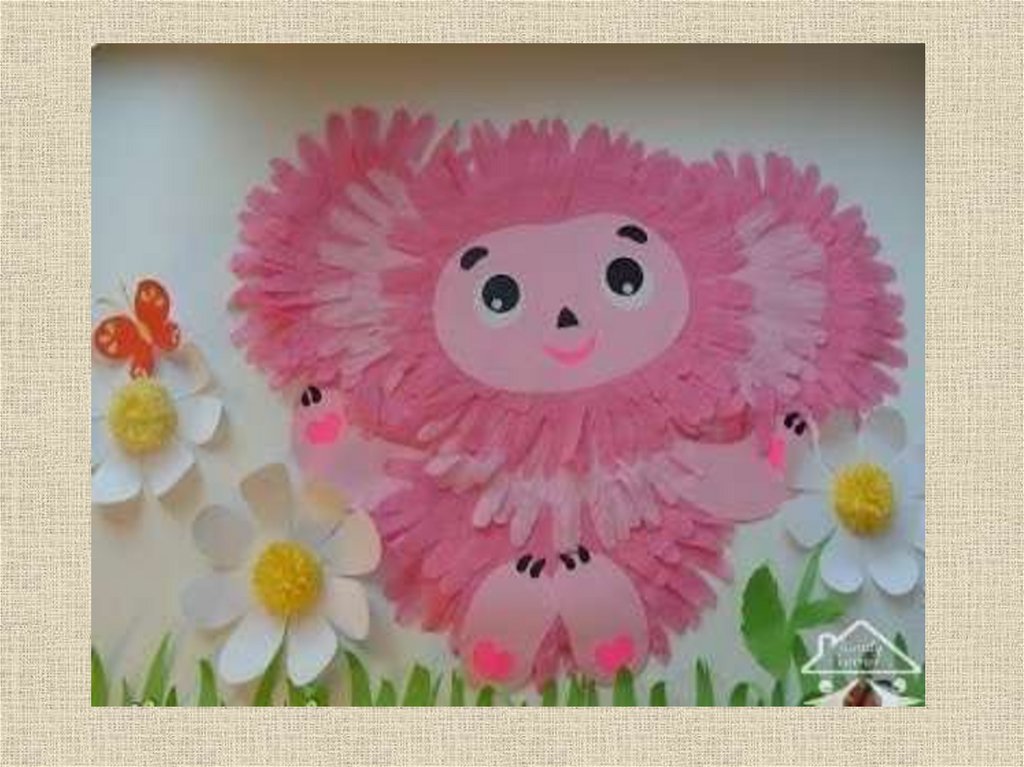 • Ребята, смастерите аппликацию из бумажныхладошек Чебурашку.