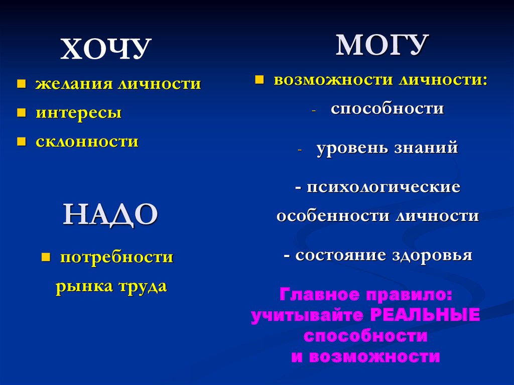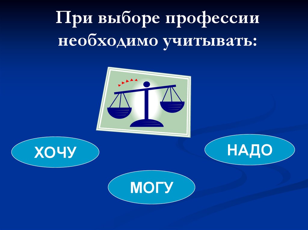 При выборе профессиинеобходимо учитывать: