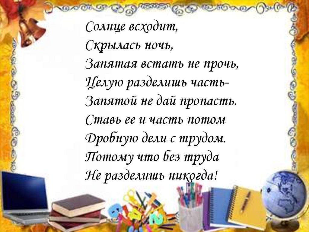 Целую разделишь частьЗапятой не дай пропасть.