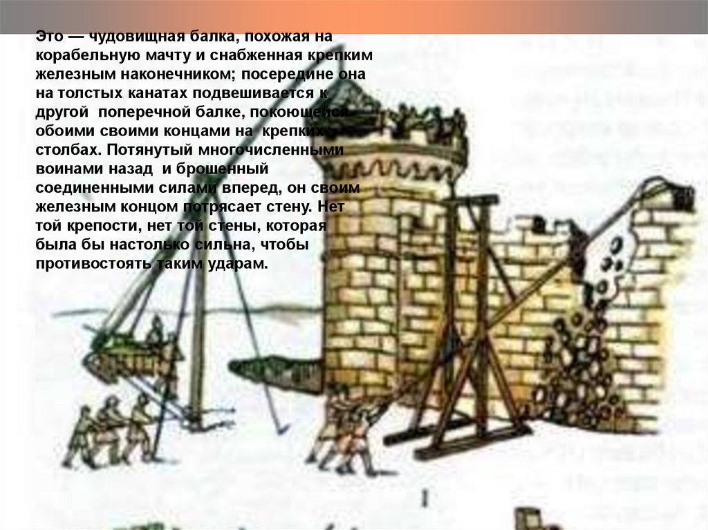 Это — чудовищная балка, похожая накорабельную мачту и снабженная крепким