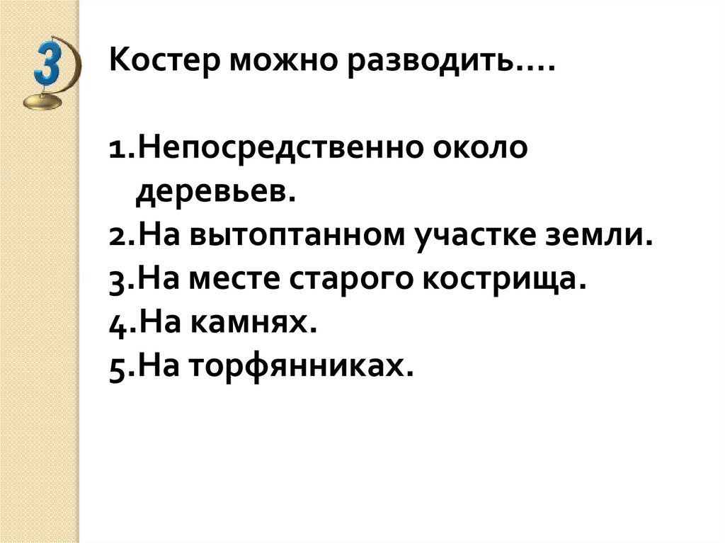 Костер можно разводить….1.Непосредственно около