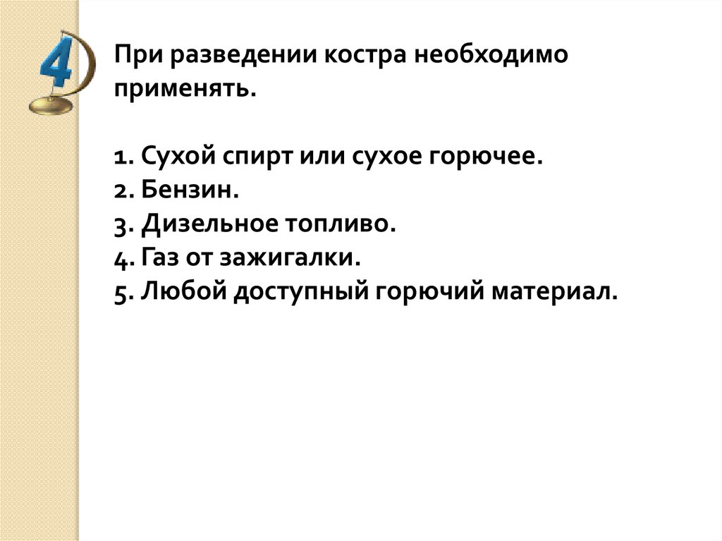 При разведении костра необходимоприменять.