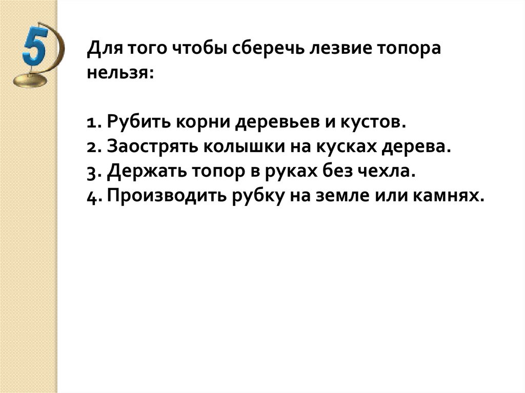 Для того чтобы сберечь лезвие топоранельзя: