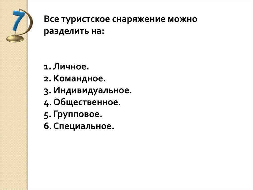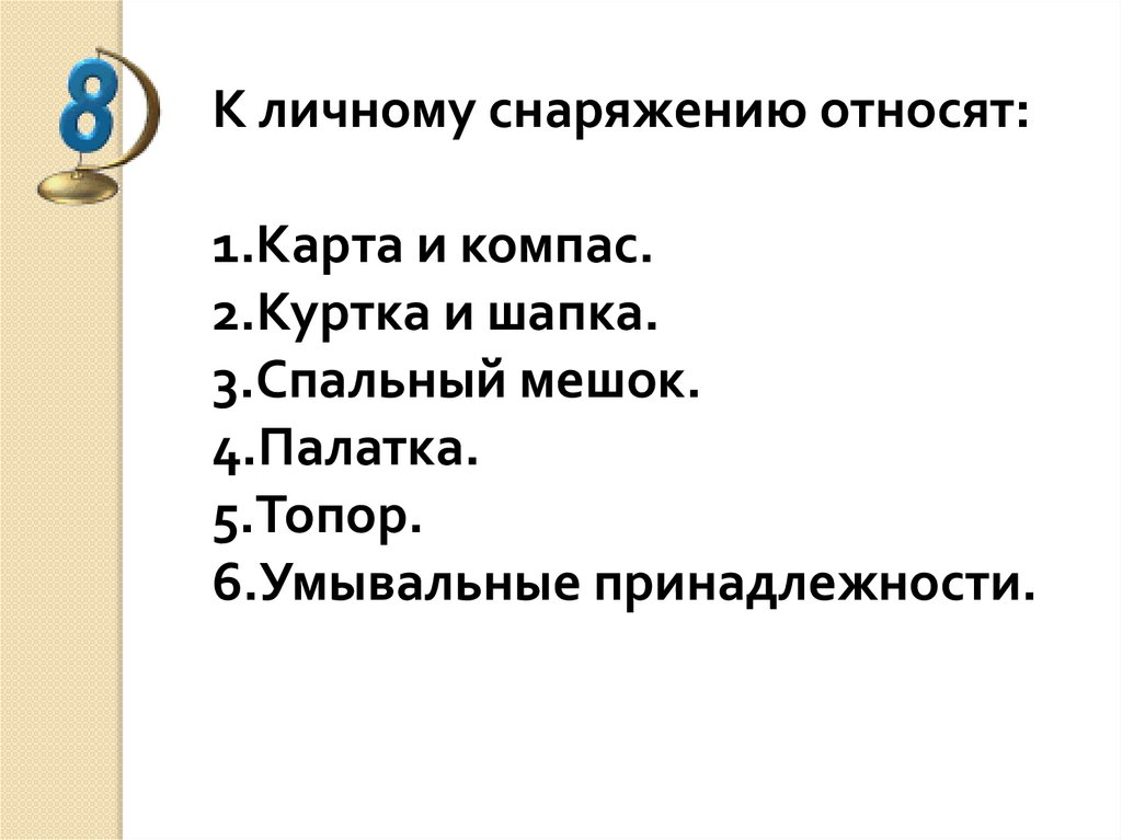 К личному снаряжению относят:1.Карта и компас.