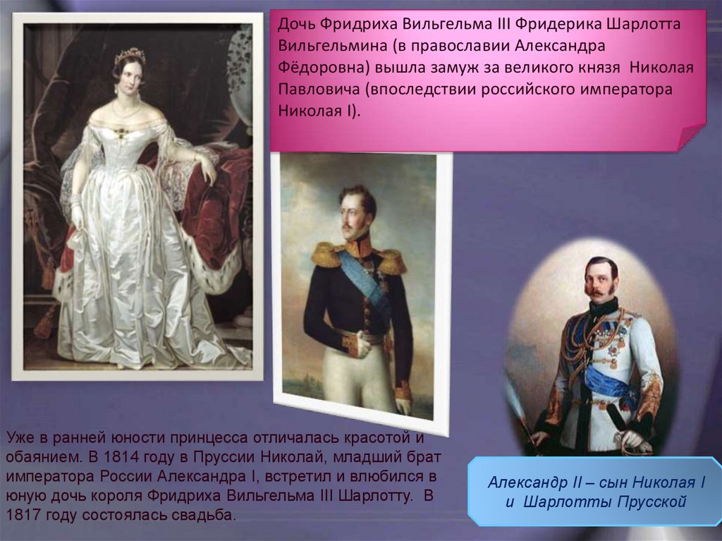 Дочь Фридриха Вильгельма III Фридерика ШарлоттаВильгельмина (в православии Александра