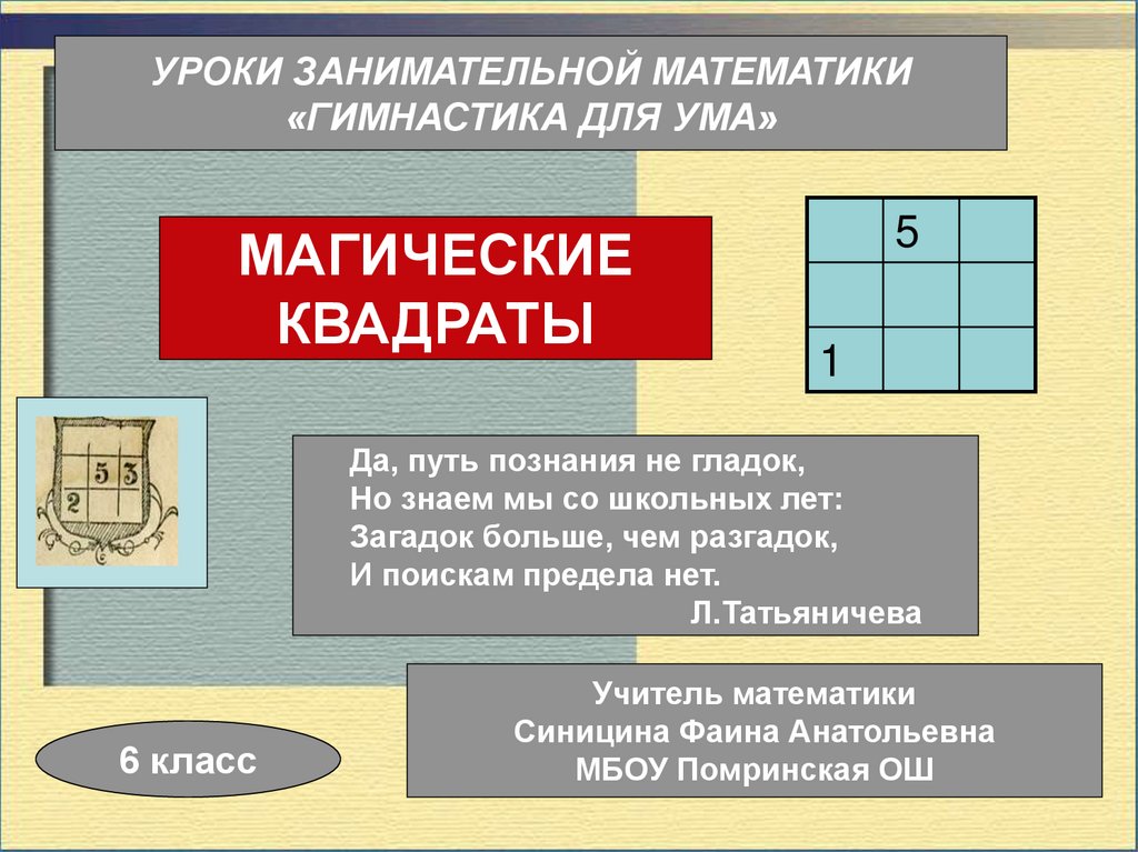 Гимнастика для ума. Магические квадраты