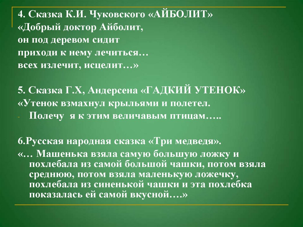 4. Сказка К.И. Чуковского «АЙБОЛИТ»«Добрый доктор Айболит,