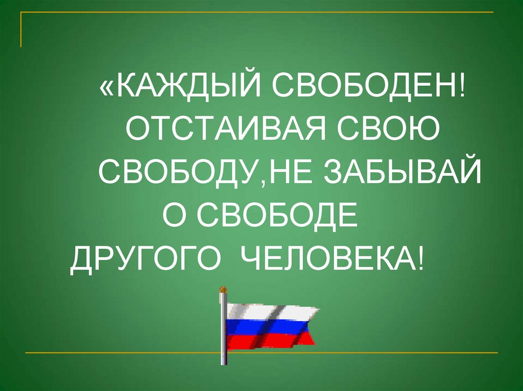 «КАЖДЫЙ СВОБОДЕН!ОТСТАИВАЯ СВОЮ