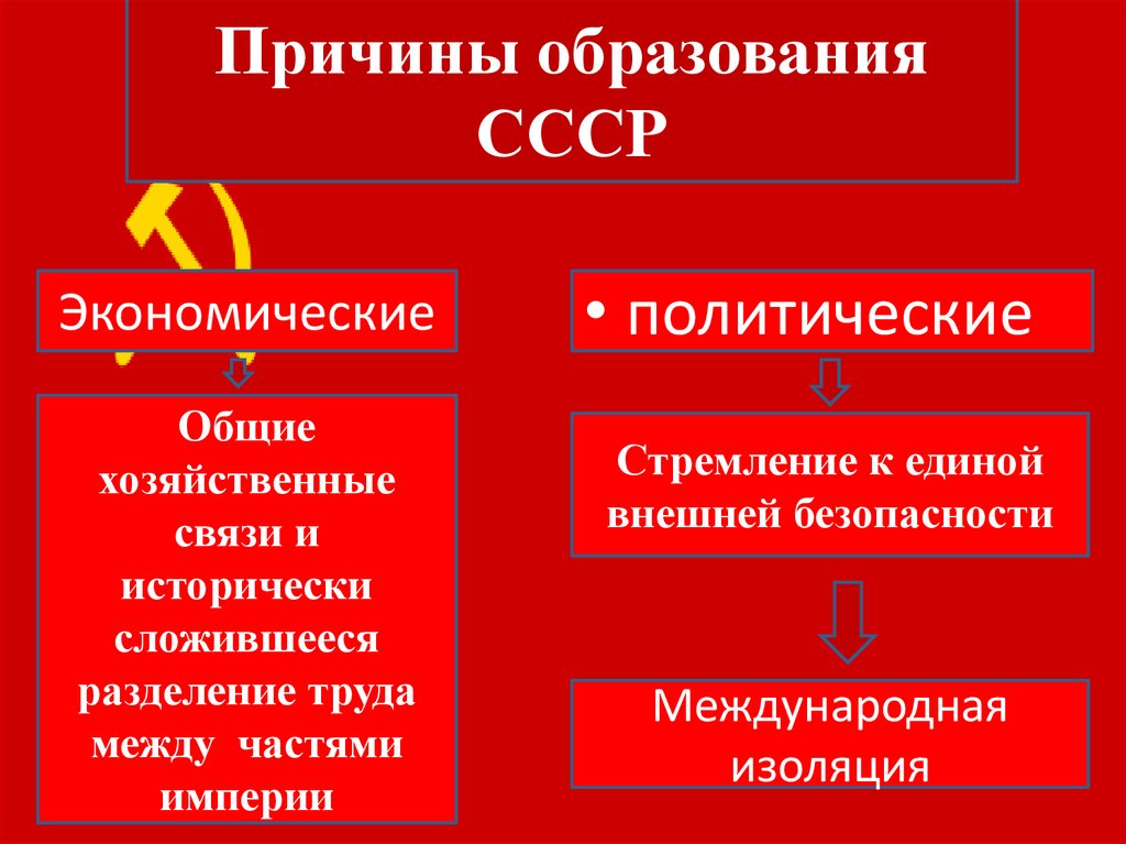 • Каковы причины образования СССР?-экономические