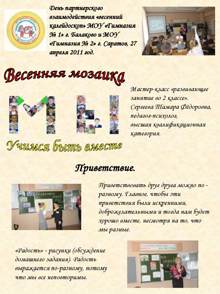 День партнерского взаимодействия «весенний калейдоскоп» МОУ «Гимназия № 1» г. Балаково и МОУ «Гимназия № 2» г. Саратов
