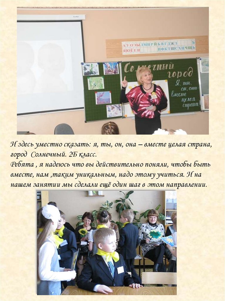 И здесь уместно сказать: я, ты, он, она – вместе целая страна,город Солнечный. 2Б класс.