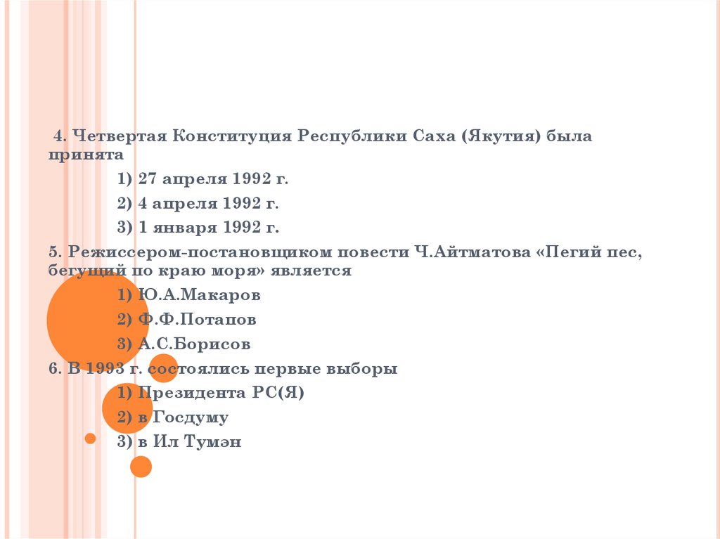 4. Четвертая Конституция Республики Саха (Якутия) былапринята