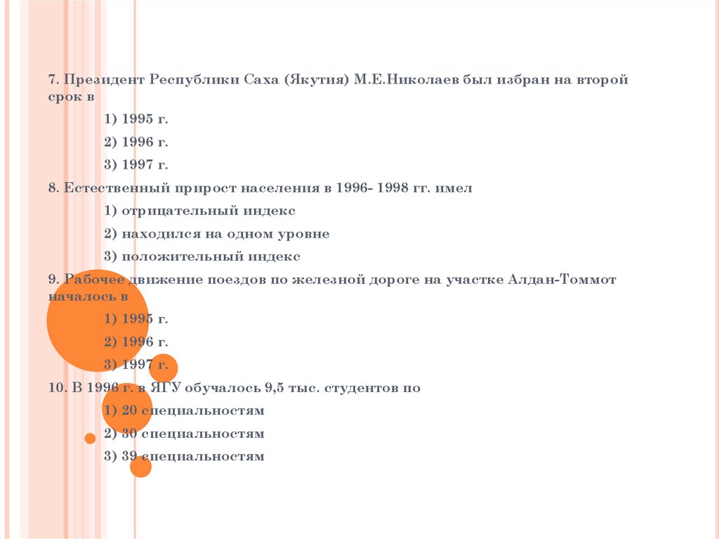 7. Президент Республики Саха (Якутия) М.Е.Николаев был избран на второйсрок в