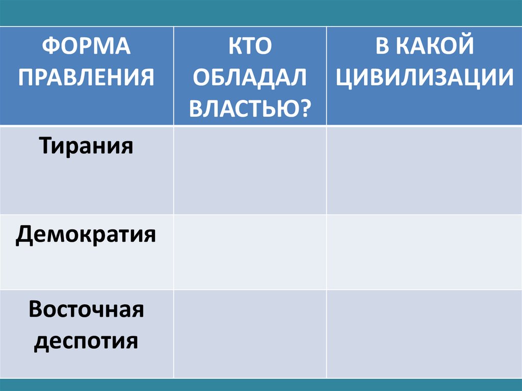 10. Тирания – это форма правления, при которой власть сосредоточена в руках одного человека.