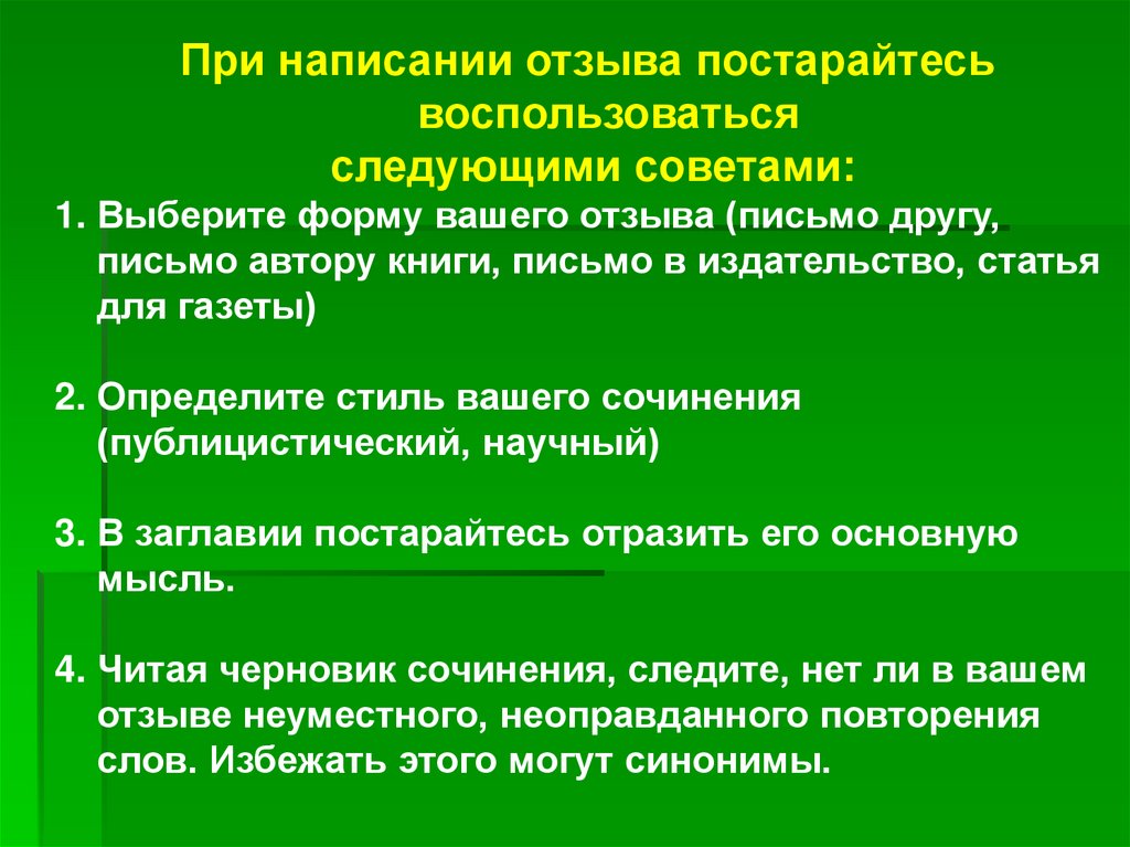 1. Выберите форму вашего отзыва (письмо другу,