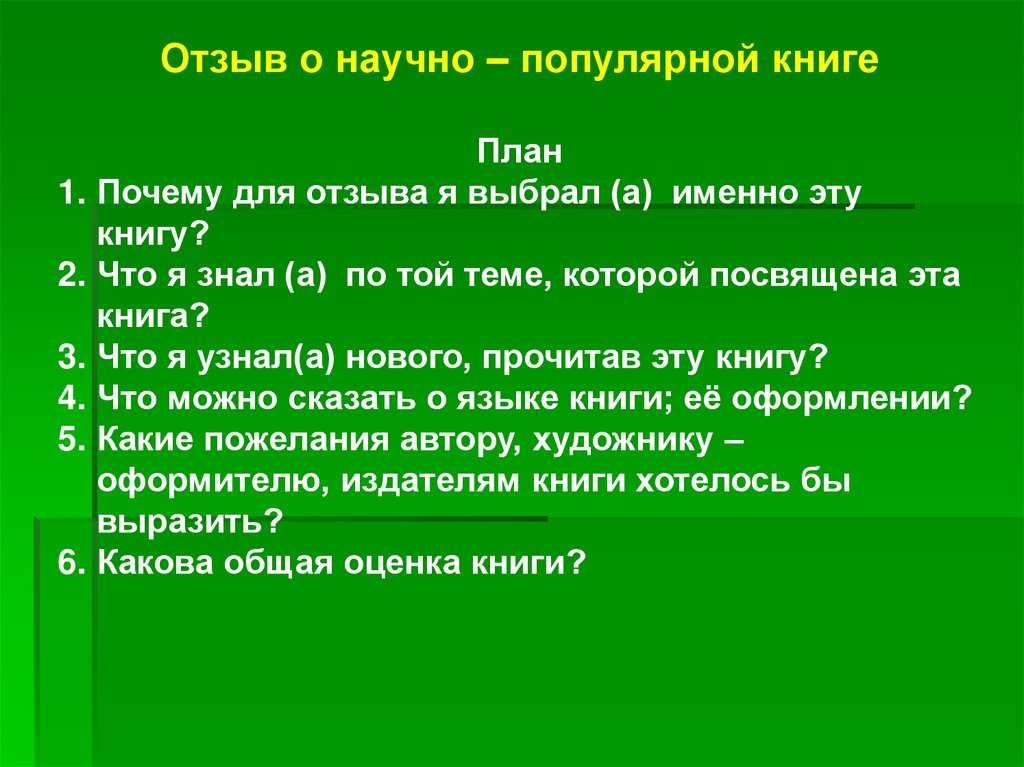 Отзыв о научно – популярной книгеПлан