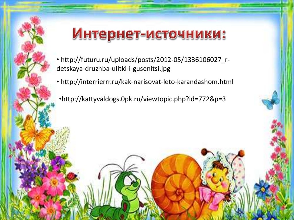 • http://futuru.ru/uploads/posts/2012-05/1336106027_rdetskaya-druzhba-ulitki-i-gusenitsi.jpg• http://interrierrr.ru/kak-narisovat-leto-karandashom.html