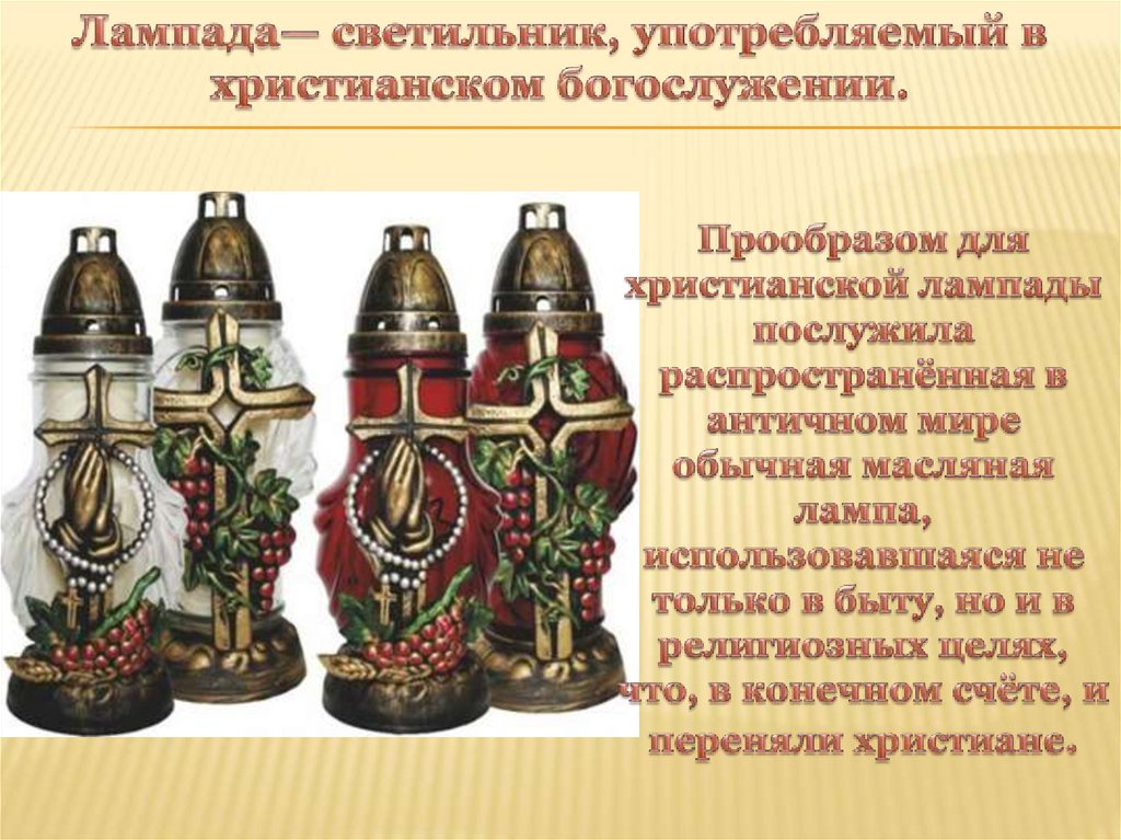 Лампада- светильник, употребляемый в христианском богослужении