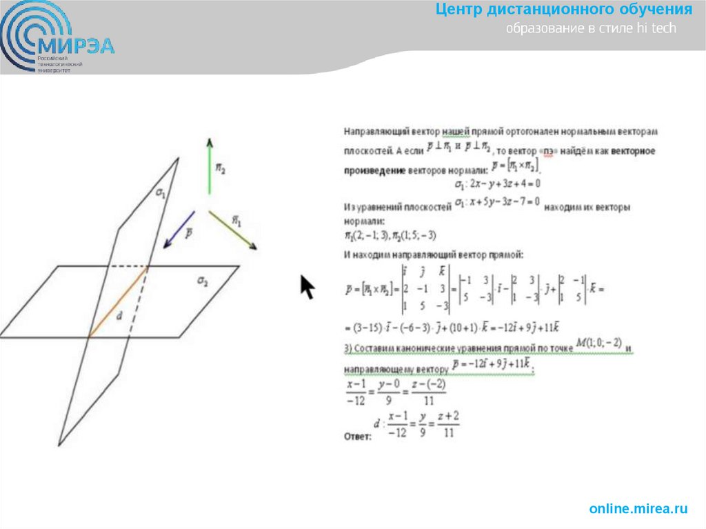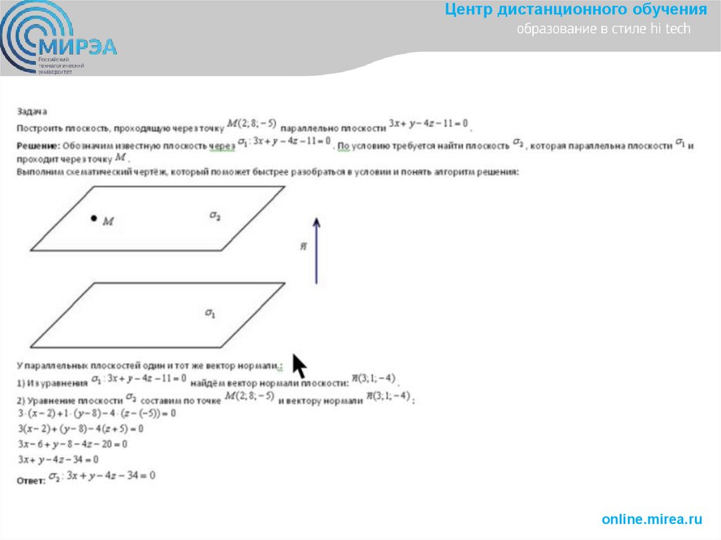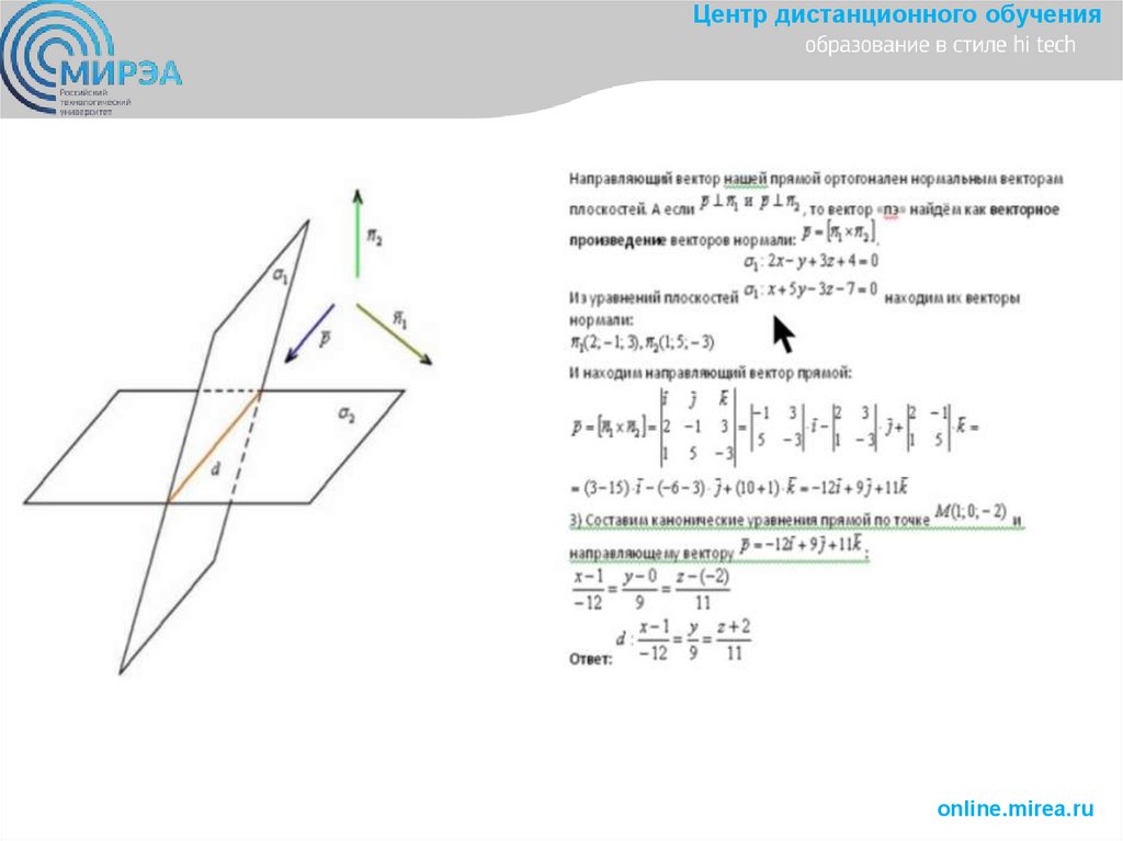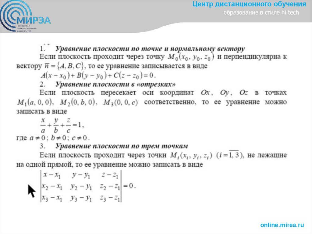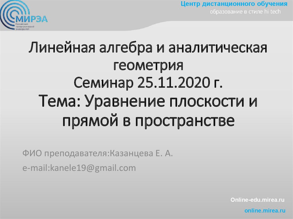 1. Линейная алгебра и аналитическая геометрия Семинар 25.11.2020 г. Тема: Уравнение плоскости и прямой в пространстве