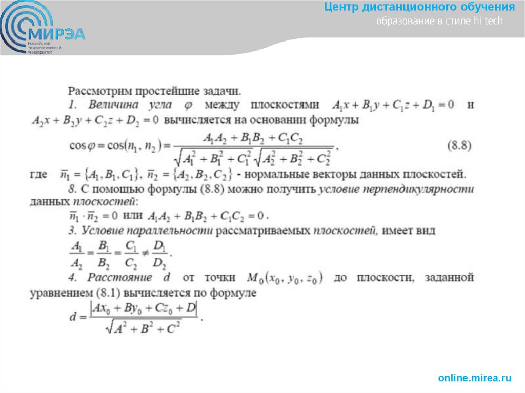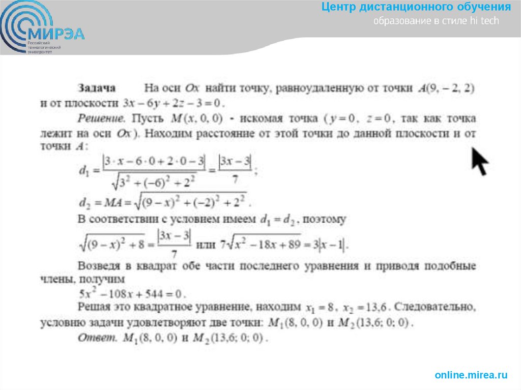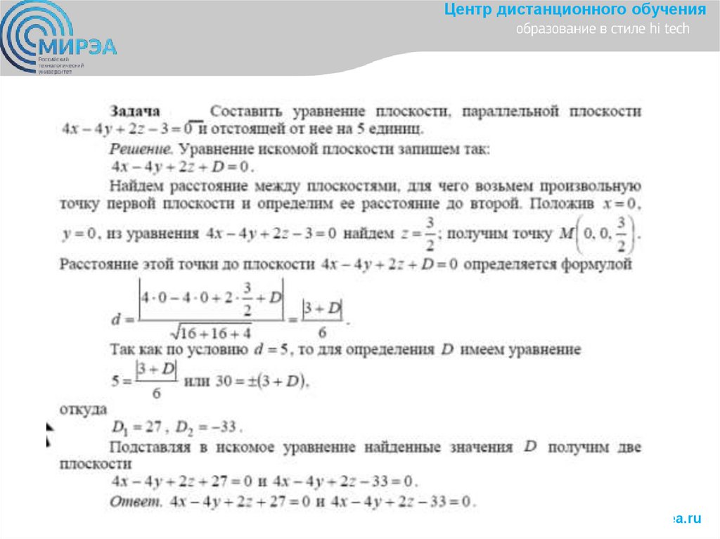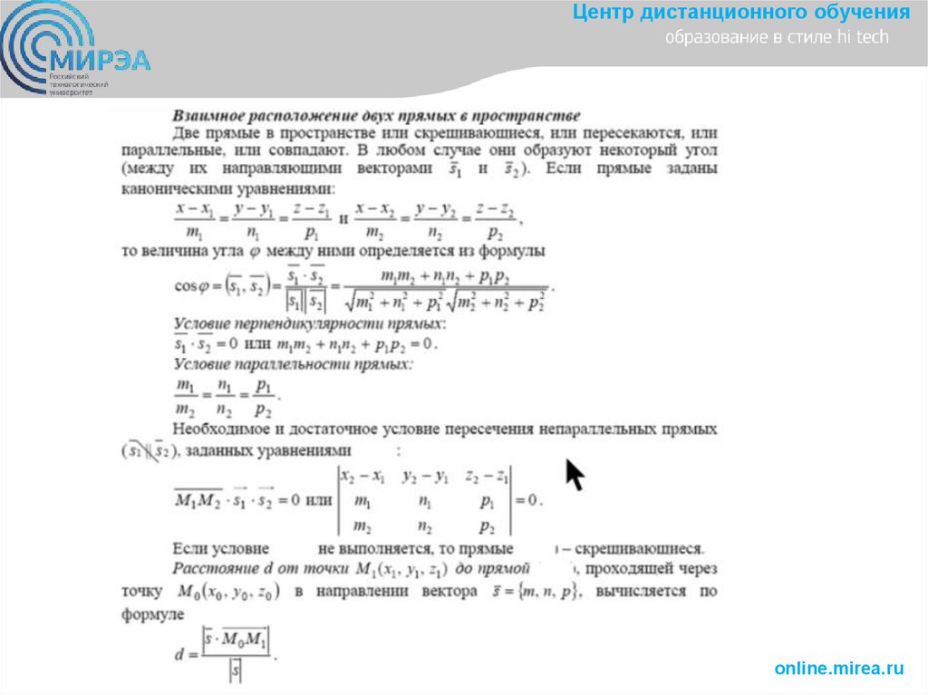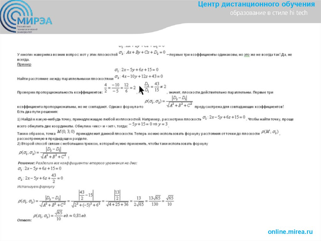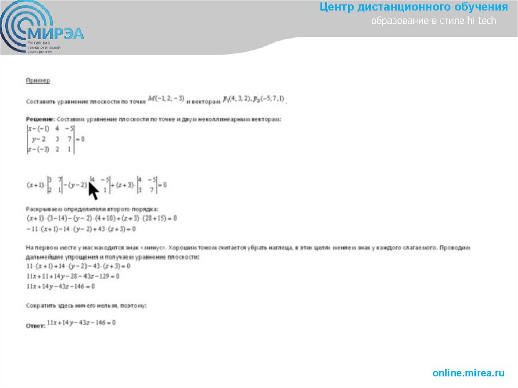 Центр дистанционного обученияЛинейная алгебра и аналитическая
