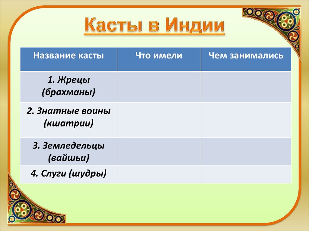 Название касты1. Жрецы