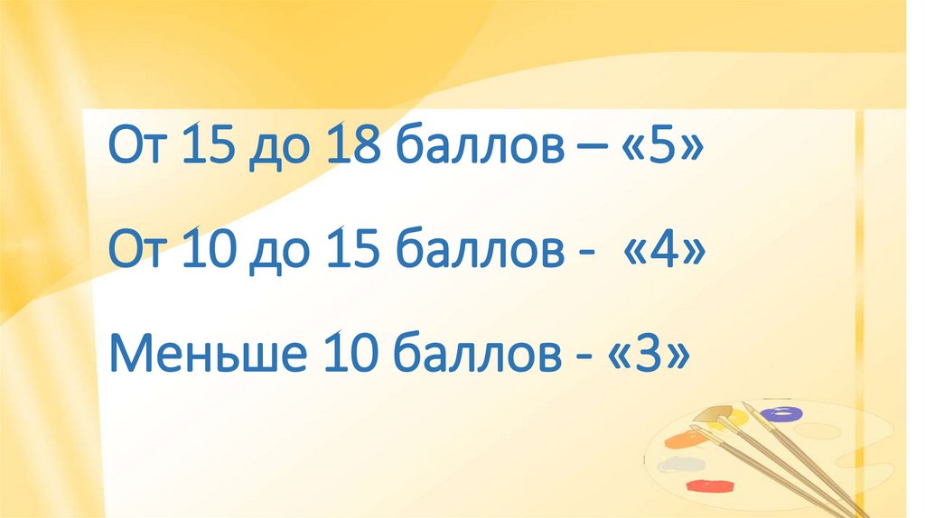 От 15 до 18 баллов – «5»От 10 до 15 баллов - «4»