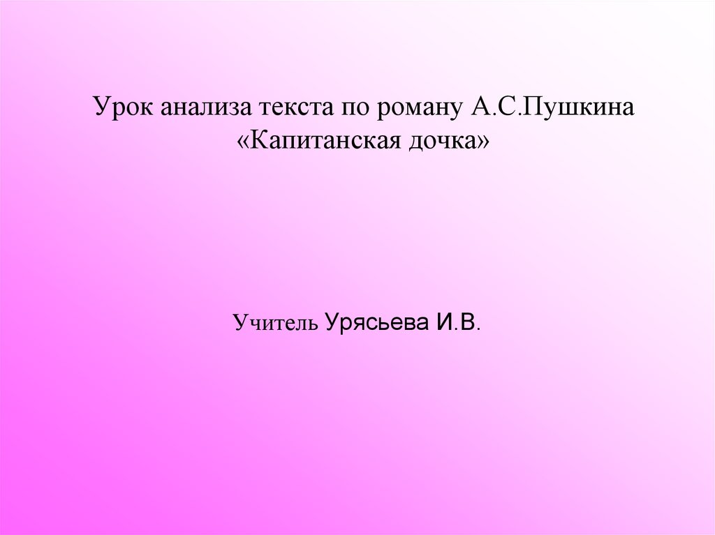 1. Урок анализа текста по роману А.С.Пушкина «Капитанская дочка»