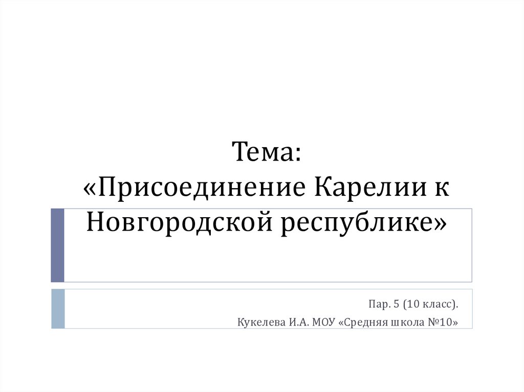 1. Тема: «Присоединение Карелии к Новгородской республике»