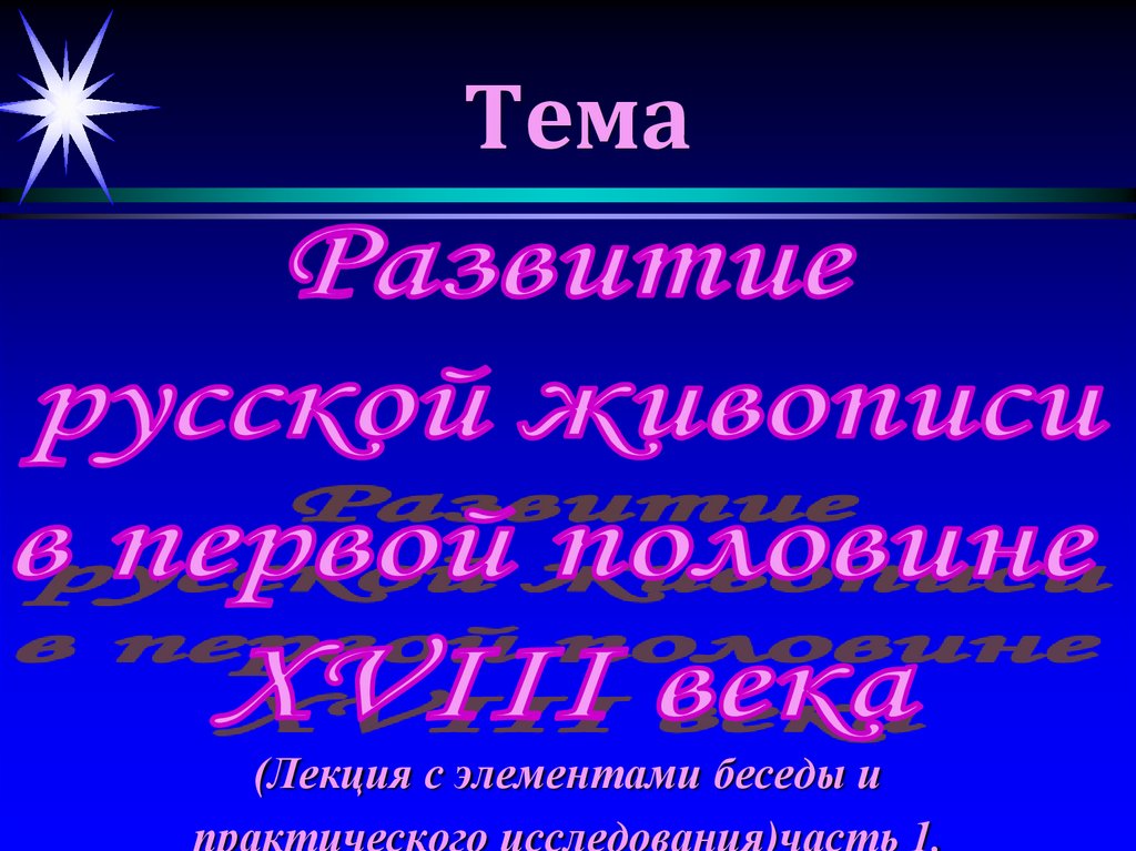 (Лекция с элементами беседы ипрактического исследования)часть 1.