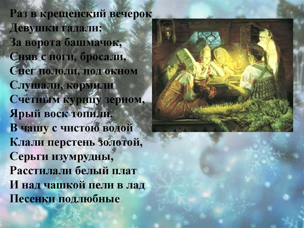 Раз в крещенский вечерокДевушки гадали: