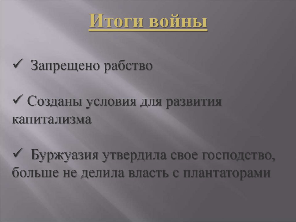 Итоги войныЗапрещено рабство