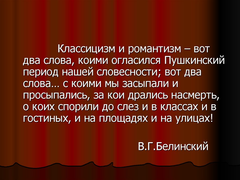 Классицизм и романтизм – вотдва слова, коими огласился Пушкинский