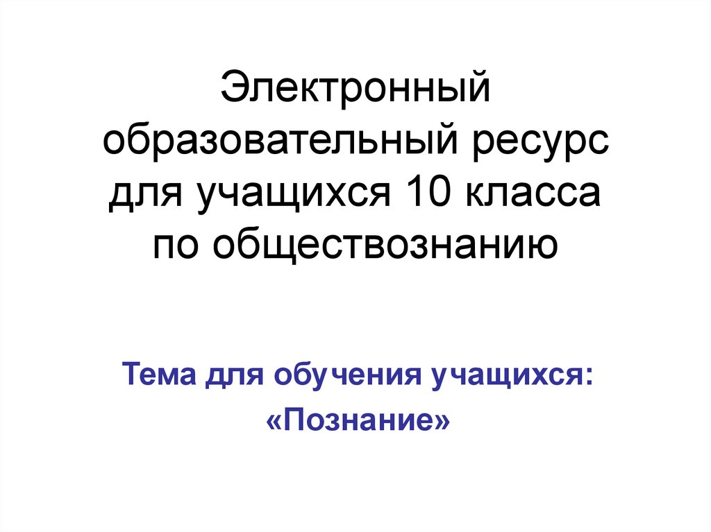 1. Электронный образовательный ресурс для учащихся 10 класса по обществознанию