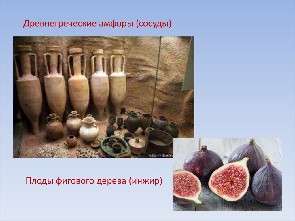 Древнегреческие амфоры (сосуды)Плоды фигового дерева (инжир)