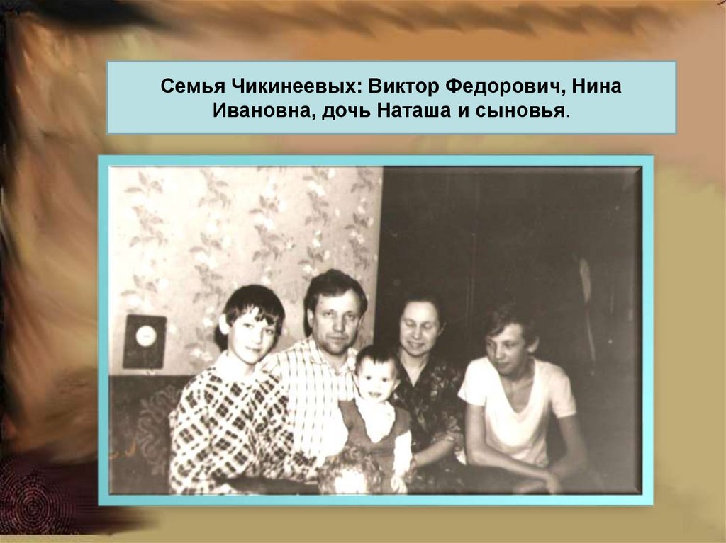 Семья Чикинеевых: Виктор Федорович, НинаИвановна, дочь Наташа и сыновья.