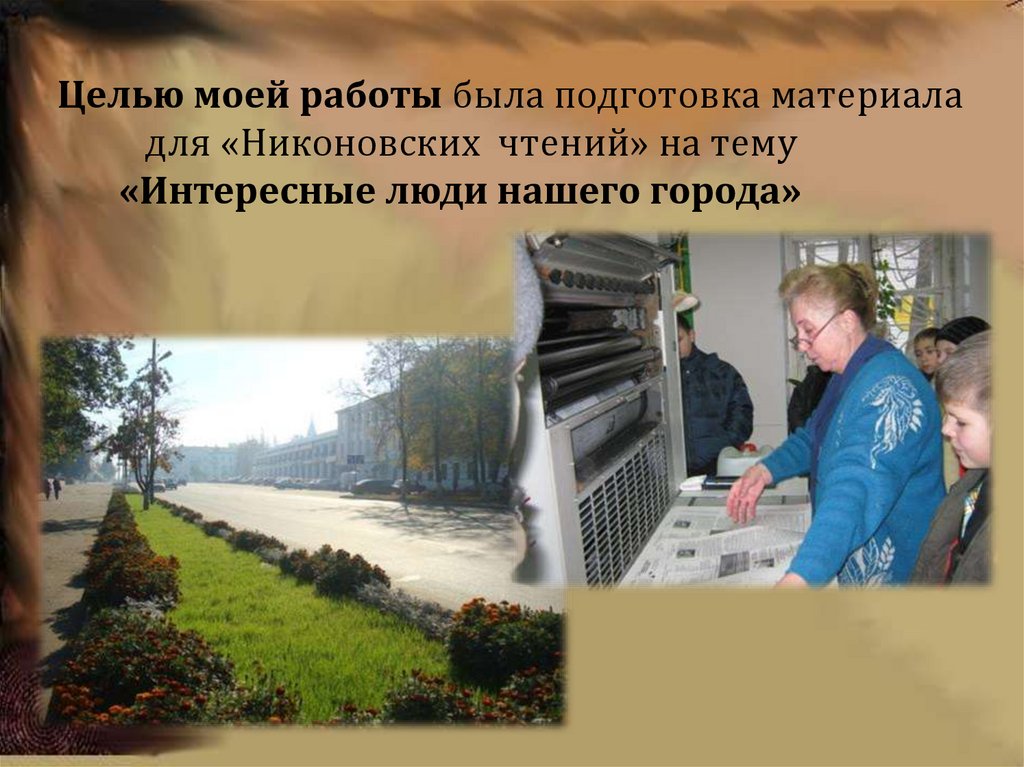 Целью моей работы была подготовка материаладля «Никоновских чтений» на тему